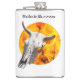 Cow skull and fire hip flask