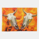 Cow skull against the background of fire and flames. Text - Hello! - added to some products