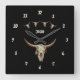 Cow Skull Brown Black Western Country Rustic Style Square Wall Clock