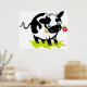 An adorable black and white cow with a flower in its mouth. This design looks really effective on these Poster