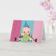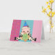 Cute and colourful Cow Birthday greeting card featuring a cow in a party hat holding a birthday gift. You can customise this cow birthday card by adding your own text before ordering!