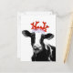 This dairy cow is all dressed up for the holiday season, and ready to pull Santa's sleigh on Christmas eve! Traditional black and white cowprint dairy cow, wearing a pair of costume fuzzy red antlers with a nice fuzzy white tuft. Customise any item with your own mooorry message!