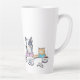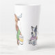 A highland cow walks into a cafe for a to-go order. A cattle dog fell in love at first sight. A cat however... Original art handmade by Sue Clancy using ink and gouache.
