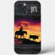 Personalise this Unique "One of a Kind" Cowboy and Longhorn Steer iPhone Case! It Features a Cowboy Riding a Horse Herding a Longhorn Steer During a Beautiful Orange Sunset...Surrounded by Wood Borders!