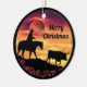 Personalise this "One Of A Kind" Western Christmas Ornament! Featuring a Cowboy Riding a Horse Herding a Longhorn Steer During a Beautiful Orange Sunset!