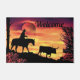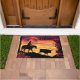 Personalise and Welcome Your Guests with this Unique "One of a Kind" Cowboy and Longhorn Steer Doormat! Featuring a Black Silhouette of a Cowboy Riding His Horse Herding a Longhorn Steer During a Beautiful Orange Sunset!