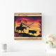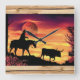 Brighten Your Home with this Unique "One of a Kind" Cowboy and Longhorn Steer Wall Clock! It Features a Cowboy Riding a Horse Herding a Longhorn Steer During a Beautiful Orange Sunset...with Wood Borders!