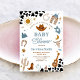 Saddle up for a memorable celebration with this western cowboy baby shower invitation! Featuring rustic illustrations like cowboy hats, boots, lassos, cacti, and cow print accents, this design perfectly sets the tone for a fun and festive gathering. The bold typography and charming western details make it ideal for honouring parents-to-be in style. Personalise with your event details and create a keepsake guests will love.