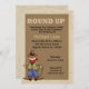 Round up all the little buckaroos with this cute cowboy invitation. Cute little cowboy with a cowboy hat and boots has a lasso and is ready to round up friends for his birthday. Customise with your party details.