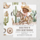 Personalise your own cowboy-themed birthday party invitation with this charming design. The invitation features a detailed illustration of a young cowboy riding a horse, set against a white background.