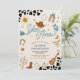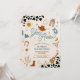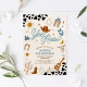 Saddle up for a rootin tootin celebration with this western cowboy birthday party invitation! Featuring playful illustrations like cowboy hats, boots, lassos, cacti, and a sheriff badge, this design sets the perfect tone for a fun-filled event. The bold cow print border and colourful text make it eye-catching and festive, while the rustic theme adds charm for little wranglers. Ideal for kids birthdays, this invitation is customisable with your party details and sure to delight guests.