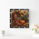 This square wall clock combines Western charm with autumn warmth, featuring a richly decorated red cowboy boot, a classic hat, and a guitar. Surrounded by a variety of pumpkins, cacti, and colourful fall leaves, this unique design captures the spirit of a rustic, harvest-themed Western landscape.
