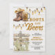 Editable White Wood Cowboy Boots & Beers Adult Any Age Birthday Party String Lights Western Cactus Floral Invitation