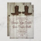 The background is distressed barn wood print. The back of the invitation has the same rustic country style design with the word "Love" in script. You could change this wording to personalise it with the bride and groom's names if you wanted to. These country theme wedding invitations are perfect for cowboy weddings.