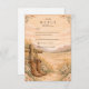 A rustic western wedding design inspired by desert landscapes, warm earth tones, and vintage botanical details. Featuring a sun-washed desert scene, wooden fencing accents, and soft florals, this invitation is perfect for ranch weddings, western celebrations, or couples planning a desert-inspired ceremony. Elegant, timeless, and fully customizable for your special day.