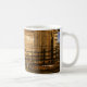 The first mug in the Cowboy Coffee series. This mug features a cowboy and his dog resting beside a barn in the long shadows of sunset.