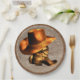 COWBOY HAT AND BOOTS---ON BURLAP LOOK BACKGROUND.---USE ANY COLOR FOR BACKGROUND.----ADD SOME TEXT.---USE ANY FONT AND FONT COLOR.