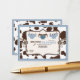 Cow print with jeans and chaps diapers on clothesline and a 3D-look twine bow diaper raffle ticket design for a baby shower.