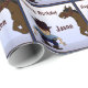 A graphic illustration of a funny kid cowboy and his horse on Birthday wrapping paper.
