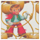 A cute retro style from the 1950s, this little western cowboy is playing with his rope lasso. A western theme for children. He's wearing a cowboy hat, cute western outfit, and getting ready to rustle a cow.