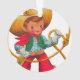 A cute retro style from the 1950s, this little western cowboy is playing with his rope lasso. A western theme for children. He's wearing a cowboy hat, cute western outfit, and getting ready to rustle a cow.