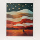 Cowboy Riding into Flag Sunset Jigsaw Puzzle
