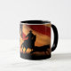 Cowboys roping with an american flag coffee mug. This is a great country western coffee mug and pretty patriotic too! A pair of team ropers, any rodeo goer would know, and a steer with a giant flag backdrop.