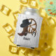 A graphic illustration of cowboy hat and boots on a can cooler.