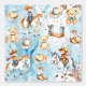 A blue and brown ai watercolor illustration of teddy bears, cowboys on ponies, cowboy boots, cowboy hats for a baby boy's nursery or little boy's room wallpaper.