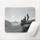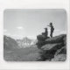 Two cowboys on a ridge pointing towards a mountain range in Wyoming.