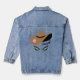 A denim jacket perfect for a cowgirl, coupled with a brown cowboy hat adorned with a pink flower and green cat-eye accents. Customise the 'Cowgal' text with your name or opt to keep it as it is.