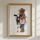 Wrangle up some rustic charm with our Cowgirl Nursery Print, featuring a sweet little cowgirl sharing a tender moment with her black and white cow. Perfect for a western-themed nursery, this heartwarming artwork adds a touch of countryside magic and makes a cherished baby shower gift!