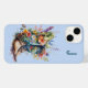 Western themed iPhone case with a blue background and lovely colourful artwork of cowgirl boots with wildflowers. Personalise the blue one letter monogram to suit your needs.