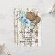 cowgirl bridal shower invitation card with blue floral design and brown accents.