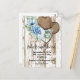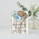 cowgirl bridal shower invitation card with blue floral design and brown accents.