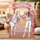 Cowgirl and Horse Pink White Ranch Birthday Party. Brunette girl Pink and white cowgirl boots and hat a horse with a saddle all with a party in the background on a country ranch. Add your age, suitable for girls and women’s birthdays. This is copyrighted design by Zizzago.