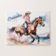 Cowgirl Horseback Riding on Beach by Ocean Custom Jigsaw Puzzle