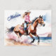 Cowgirl Horseback Riding on Beach by Ocean Custom Postcard