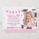 Cowgirl Pink Gingham Check Western Theme Birthday Invitation