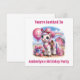 An adorable cowgirl pony is celebrating her first birthday with a pink balloon with the number 1 and a pink cowgirl hat on a farm. Personalise the invitation with your child's name.