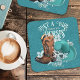 Cowgirl quote turquoise leather cowboy boots hat coaster