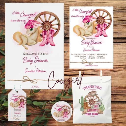 Cowgirl western rodeo baby shower pink cow pattern cute baby horse customised monogrammed napkins template personalised cowgirl baby shower tableware western baby shower table decor rodeo baby girls baby shower party supplies personalised paper plates