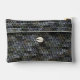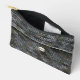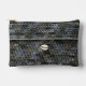 Image printed on accessory pouch is from a photo of original crochet work designed handmade and Copyright © by published designer Delores Chamblin. The picture of a front section of the unique handcrafted clutch bag made with shades of grey yarn and African cowrie shell is reproduced on the travel case.