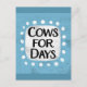 "Cows For Days" is a fun text design with a white accent shape surrounded by white whimsical textured dots.