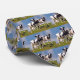 This fun tie shows a group of young Holstein cows on top of a hill. The photo was taken in Azores islands (Portugal), where cows are very common in the landscape.