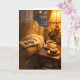 A cozy, comforting 80th birthday scene—armchair, soft blanket, open book with glasses, warm lamp glow, and a little cake topped with “80” candles beside a steaming cup of tea. Perfect for book lovers, homebodies, and anyone who appreciates calm, cozy vibes. Add your message inside for a personal touch.