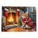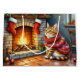 This design captures the ultimate cozy Christmas scene, perfect for any cat lover! It features an elegant Abyssinian Cat sitting contentedly next to a warm, crackling fireplace. The mantle and wall are decorated with twinkling Christmas lights and festive holiday garlands, setting a beautiful, warm atmosphere.