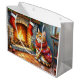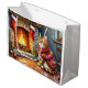 Cozy Abyssinian Cat by Fireplace Christmas Lights Large Gift Bag