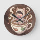 Cute cat boy enjoying a donut in a coffee cup with books. Perfect for coffee, cat, and book lovers.