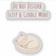 Cute cartoon cat curled up in a cozy sleeping position with the phrase “Do Not Disturb: Sleep and Cuddle Mode”.